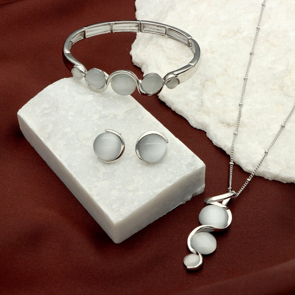 Elegancki zestaw biżuterii, składający się z naszyjnika i dopasowanych kolczyków. Idealny do codziennych i wieczorowych stylizacji, dodając klasy i subtelnej elegancji.